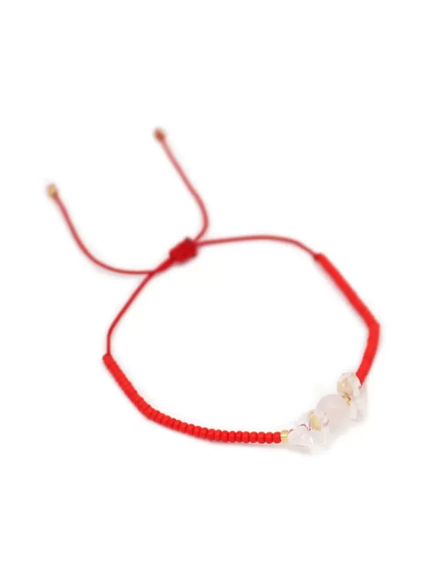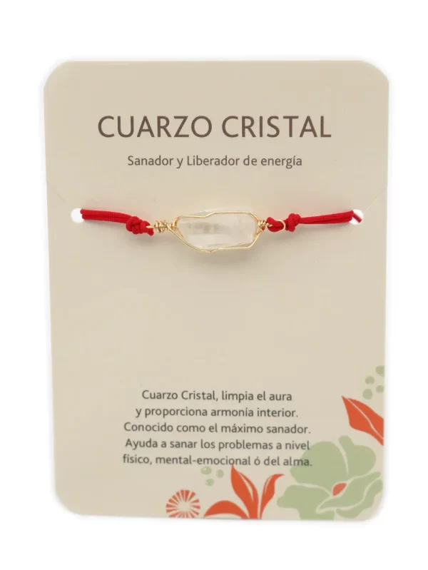 PulseraPiedra:Cuarzo cristalHilo:Chino rojo con mostacilla rojasMedida de piedra:#4Medida del hilo:30cm aprox.