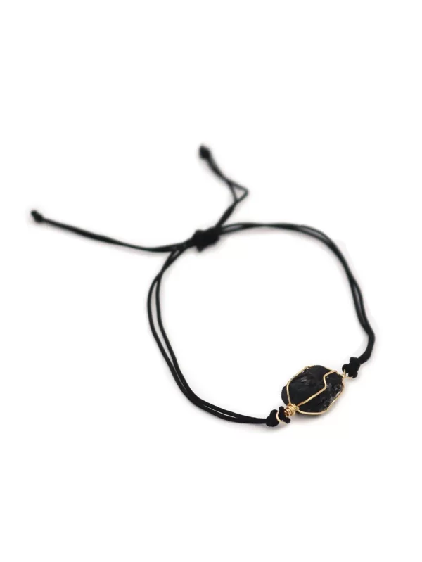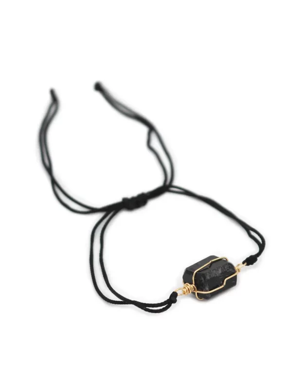 PulseraPiedra:TurmalinaHilo:Chino negroMedida de piedra:1.5cm x 1cm aprox.Medida del hilo:30cm aprox.