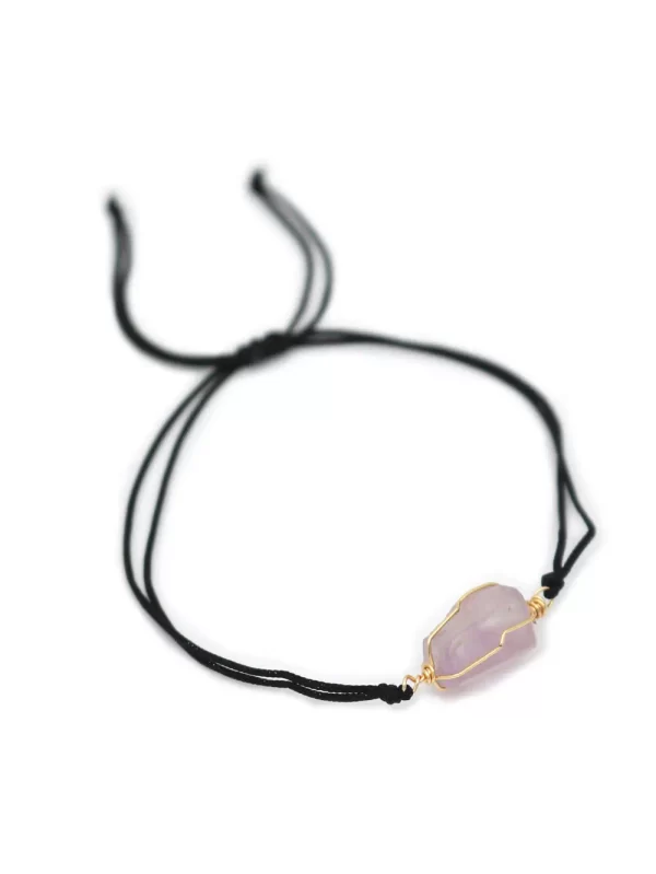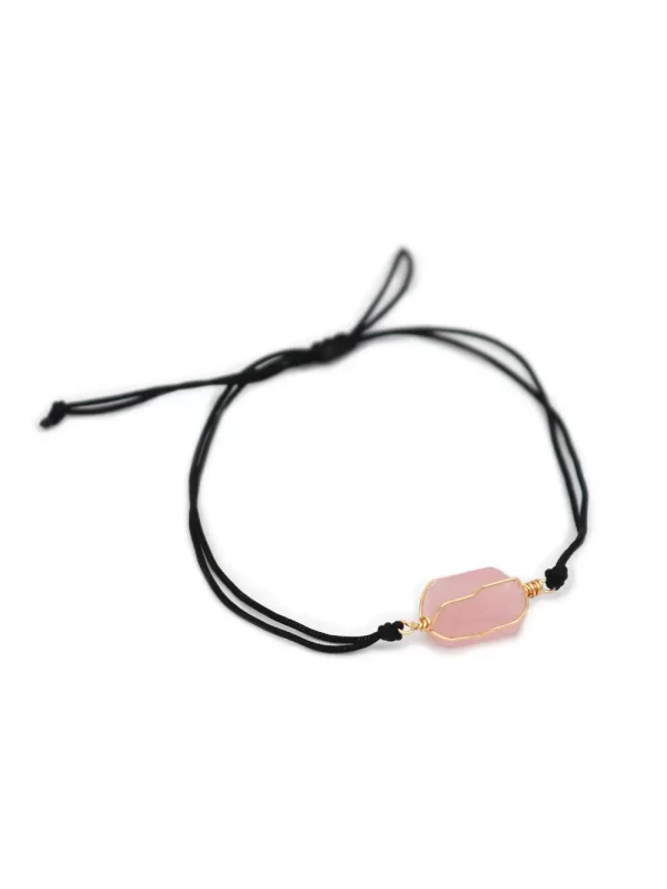 PulseraPiedra:Cuarzo rosaHilo:Chino negro con mostacilla negraMedida de piedra:#4Medida del hilo:30cm aprox.