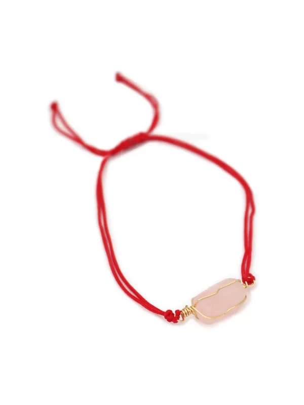 PulseraPiedra:Cuarzo rosaHilo:Chino rojoMedida de piedra:1.5cm x 1cm aprox.Medida del hilo:30cm aprox.