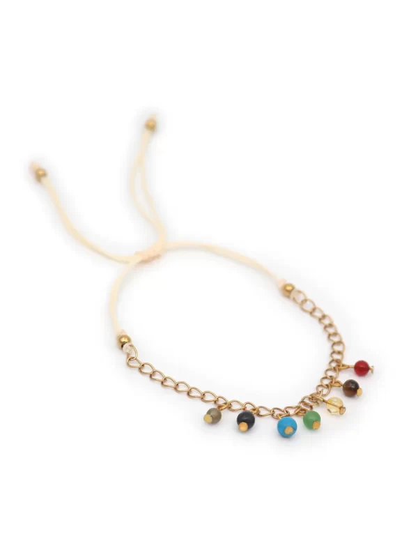 PulseraPiedra:7 Chackras con aceroHilo:Chino cremaMedida de piedra:#4Medida del hilo:30cm aprox.