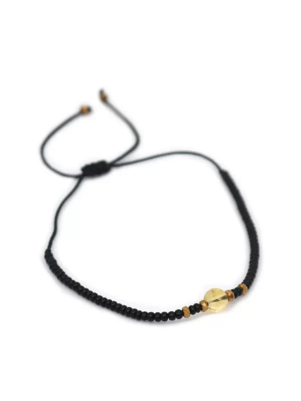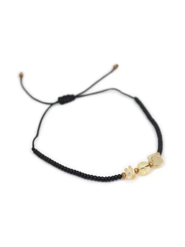 PulseraPiedra:Citrinoy mostacilla negraHilo:Chino negroMedida de piedra:#4Medida del hilo:30cm aprox.