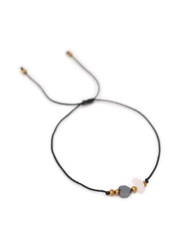 PULSERA REGULADORA CON PIEDRA HEMATITE Y CUARZO ROSA CON HILO CHINO