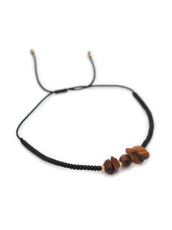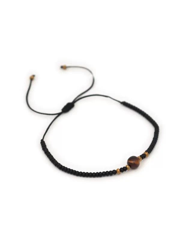 PulseraPiedra:Ojo de tigreHilo:Chino negro con mostacilla negraMedida de piedra:#4Medida del hilo:30cm aprox.