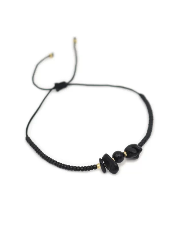 PULSERA REGULADORA CON PIEDRA ONIX CON HILO CHINO Y MOSTACILLA