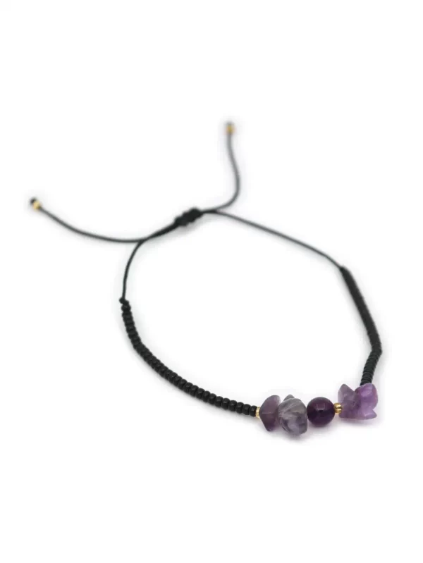 PULSERA REGULADORA CON PIEDRA AMATISTA CON HILO CHINO Y MOSTACILLA