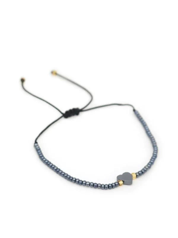 PulseraPiedra:HematitaMaterial:Dije pasante de corazonMedida del dije:1cm aprox.Medida de la pulsera:30cm aprox.
