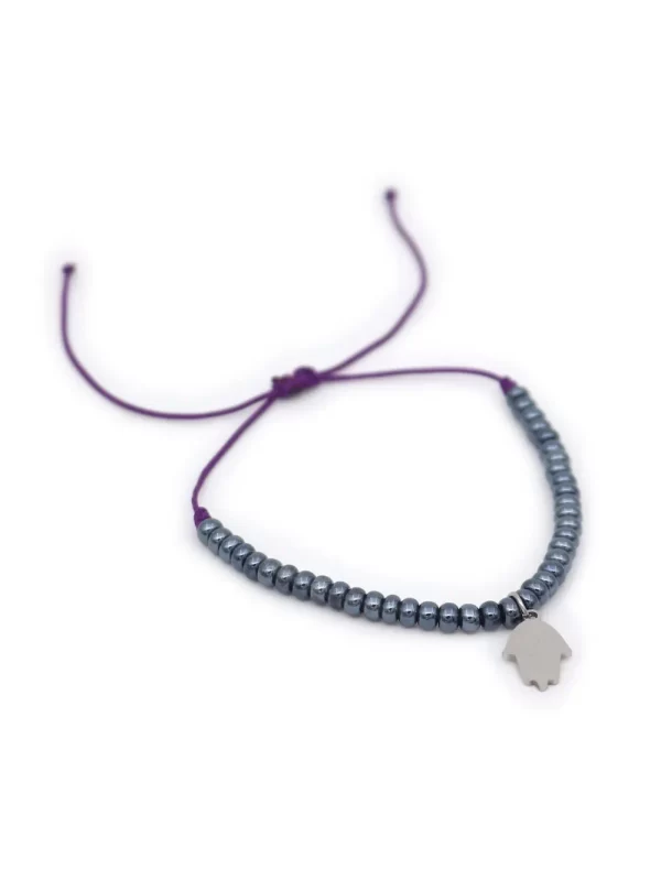 PulseraMaterial:MostacillasHilo:Chino moradoMedida de dije:acero de 1cmMedida del hilo:30cm aprox.