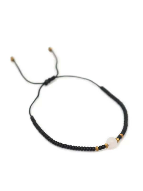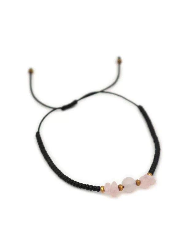 PulseraPiedra:Cuarzo rosa y mostacilla negraHilo:Chino negroMedida de piedra:#4Medida del hilo:30cm aprox.