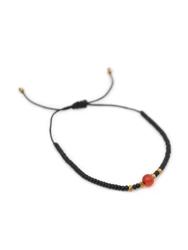 PulseraPiedra:Cornalina y mostacilla negraHilo:Chino negroMedida de piedra:#4Medida del hilo:30cm aprox.