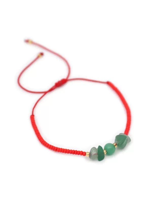 PulseraPiedra:Jade verdeHilo:Chino rojo con mostacilla rojaMedida de piedra:#4Medida del hilo:30cm aprox.