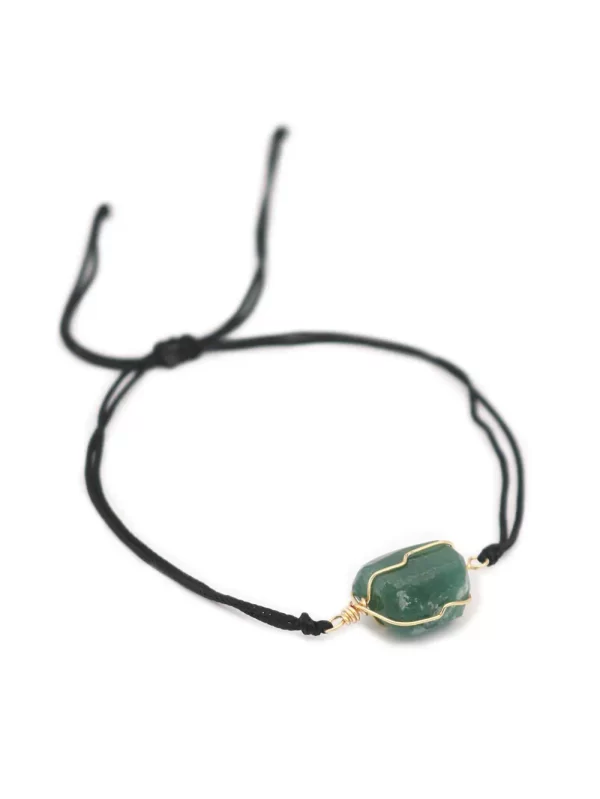 PulseraPiedra:Jade verdeHilo:Chino negroMedida de piedra:1.5cm x 1cm aprox.Medida del hilo:30cm aprox.