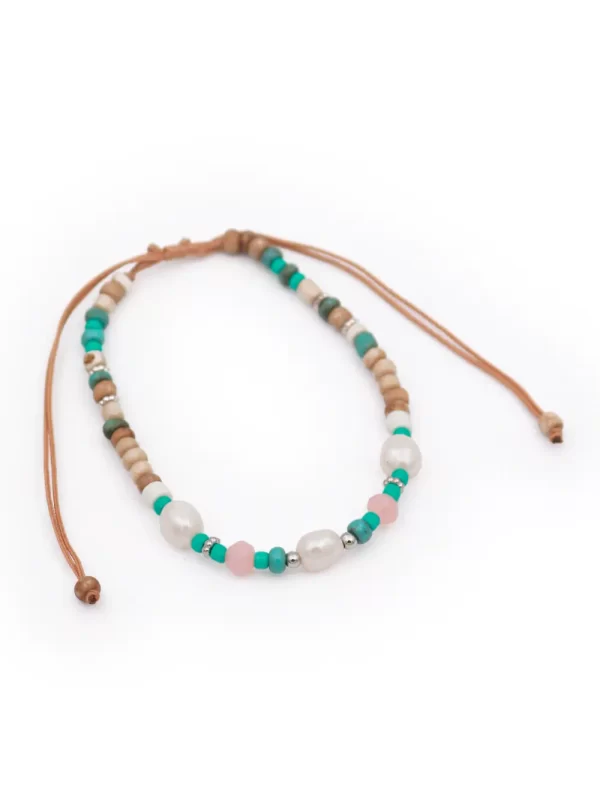 TOBILLERA DE HILO CON CONCHITAS Y CUENTAS VARIADAS