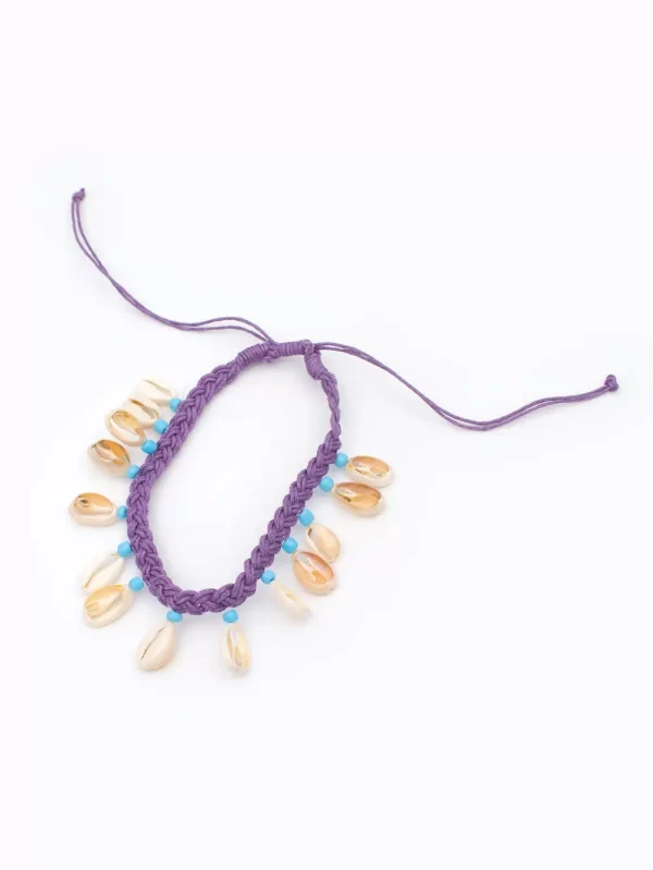 Tobillera Material: Hilo artesanal y caracol marino Color: Lila