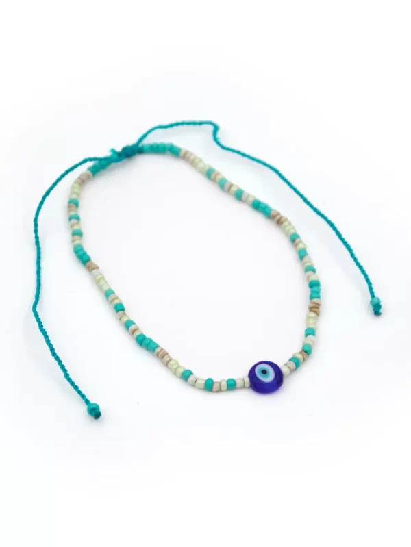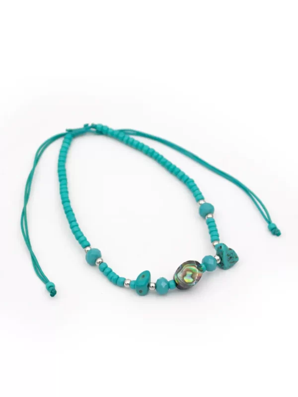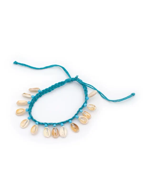 Tobillera Material: Hilo artesanal y caracol marino Color: Celeste