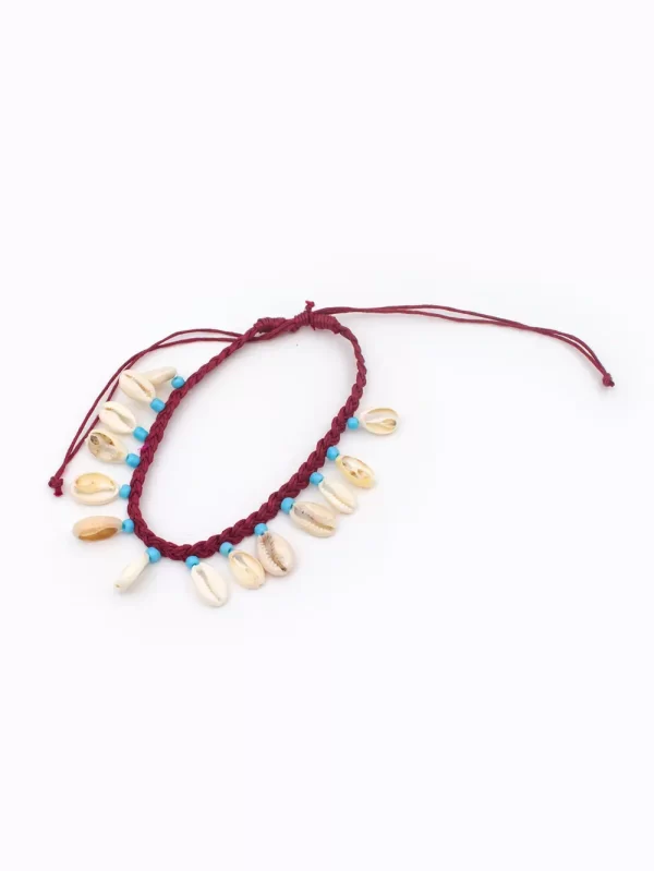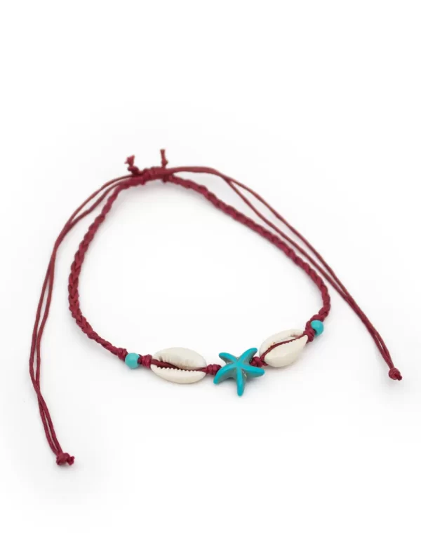 Tobillera Material: Hilo artesanal y caracol marino Color: rojo