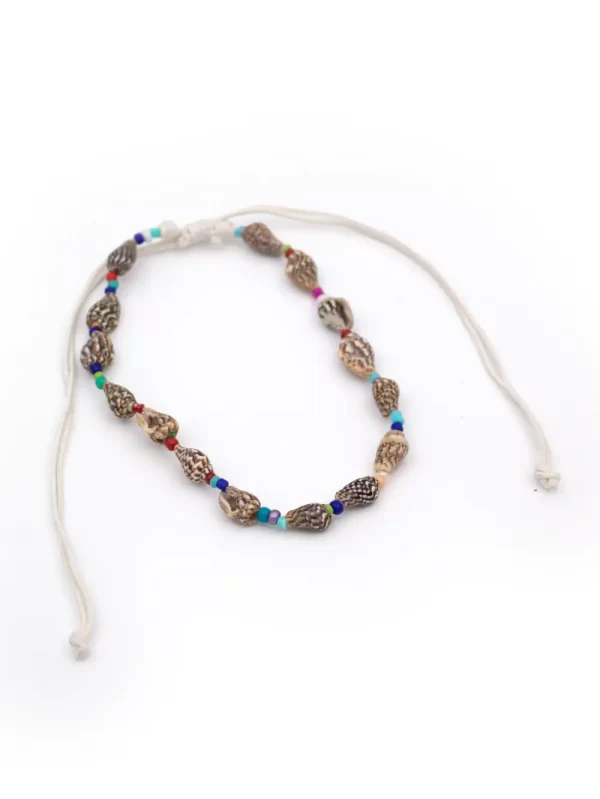 TOBILLERA DE HILO CON CONCHITAS Y CUENTAS VARIADAS