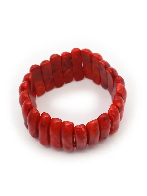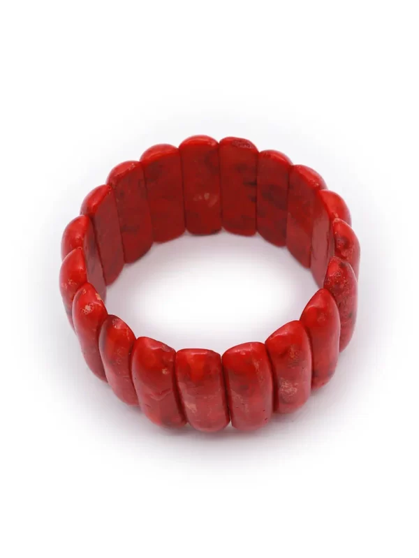 PULSERA ELÁSTICA DE CUENTAS CORAL ROCA ROJO DE RAMA VINTAGE