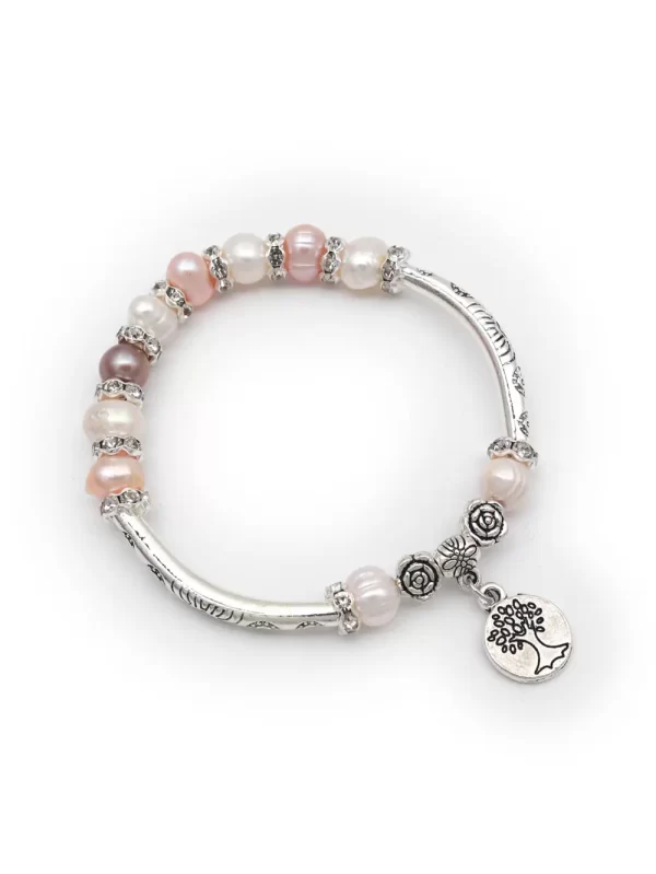 PulseraMaterial:Metal y Perlas naturalesDije:Arbol de la vidaMedida:RegulableForma:Circular