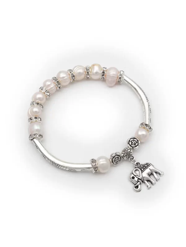 PulseraMaterial:Metal y Perlas naturalesDije:ElefanteMedida:RegulableForma:Circular