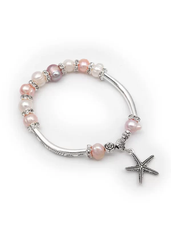 PulseraMaterial:Metal y Perlas naturalesDije:Estrella de MarMedida:RegulableForma:Circular