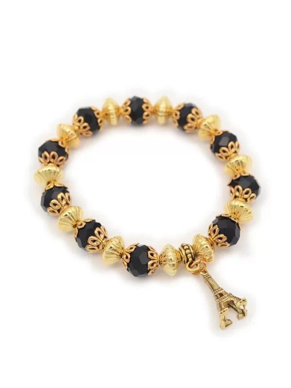 PULSERA ELASTICA CON MURANO, PLASTIMETAL Y DIJE DE TORRE EIFEL