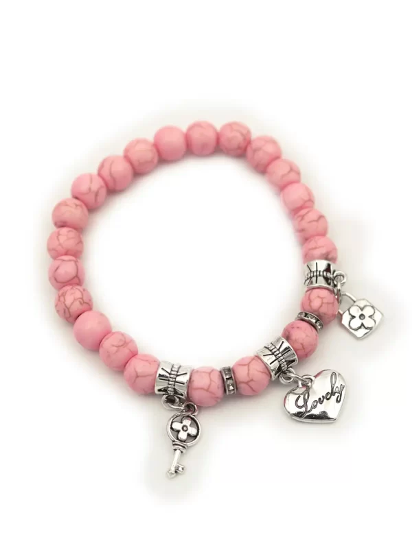 PULSERA ELASTICA CON PERLAS ROSALDAS CON TRES DIJES