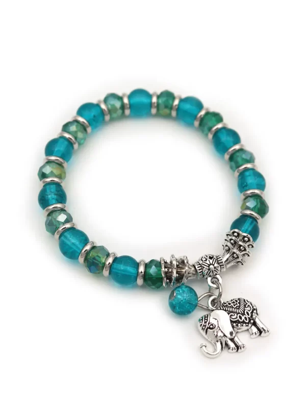 PULSERA ELASTICA CON MURANO, PLASTIMETAL METAL CON DIJE DE ELEFANTE DE LA SUERTE