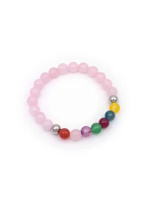 PULSERA DE PIEDRA CUARZO ROSA CON LAS 7 CHACKRAS