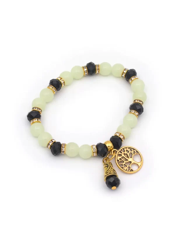 PULSERA DE PIEDRA FOSFORECENTE CON DIJES DE ACERO
