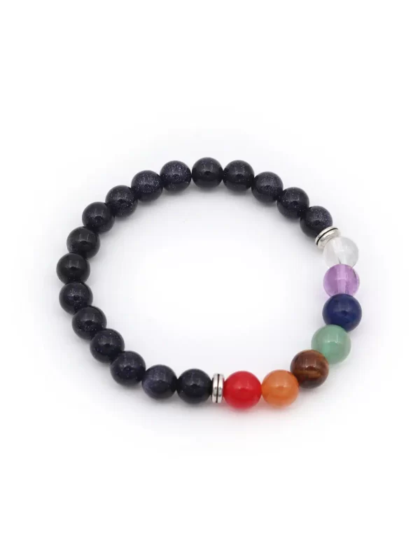 PULSERA DE PIEDRA EN BOLITAS CON 7 CHCRAS Y LLUVIA DE PLATA