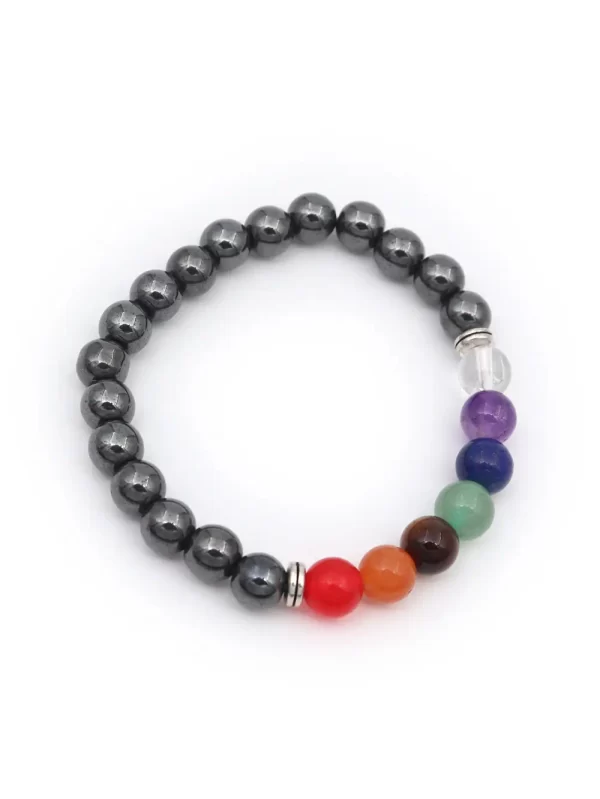 PULSERA DE PIEDRA EN BOLITAS CON 7 CHCRAS Y HEMATITA