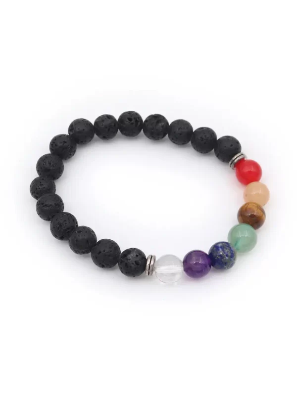 PULSERA DE PIEDRA EN BOLITAS CON 7 CHCRAS Y VOLCANICA