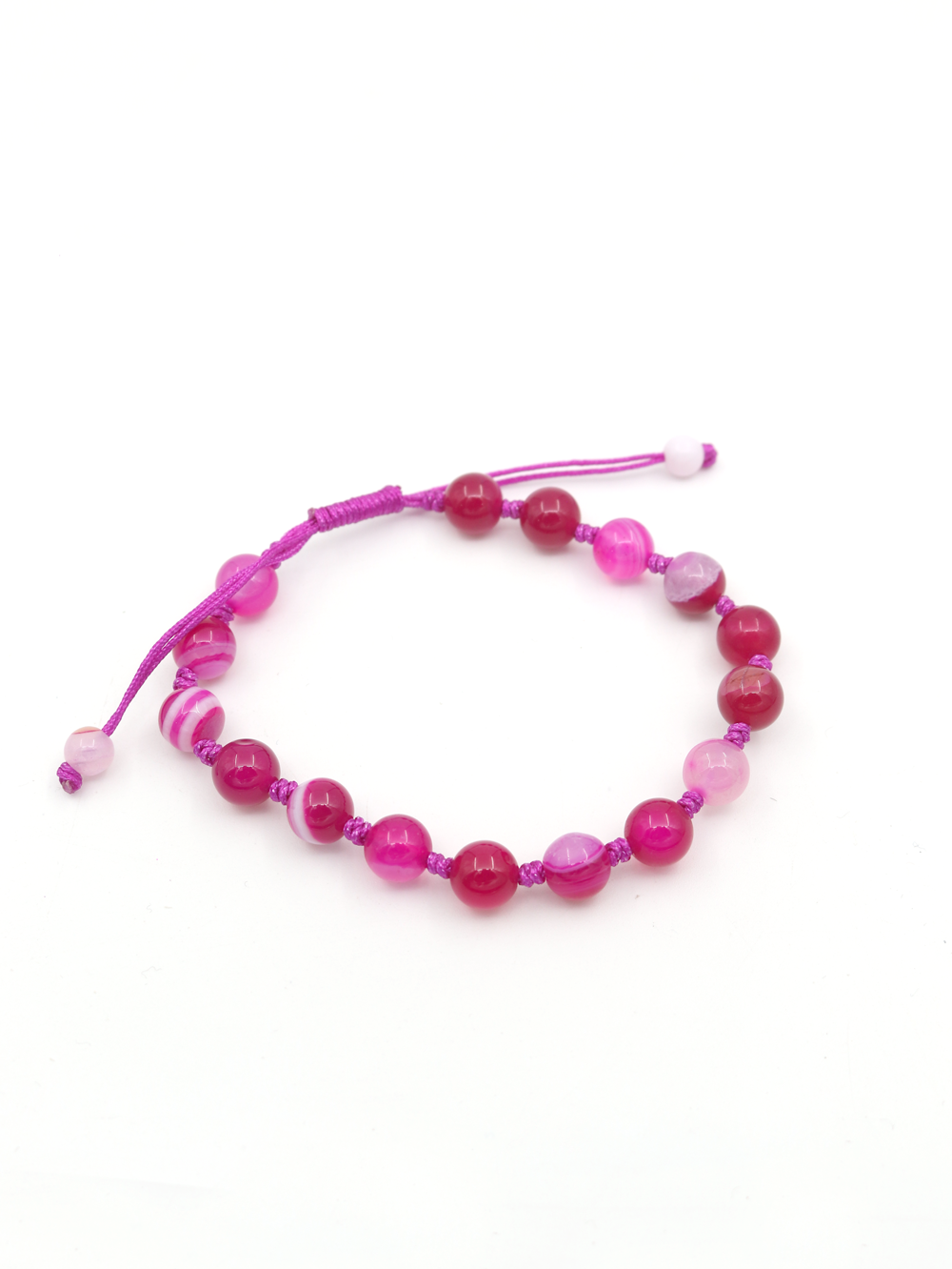 PULSERA DE HILO CON PIEDRA AGATA FUCSIA