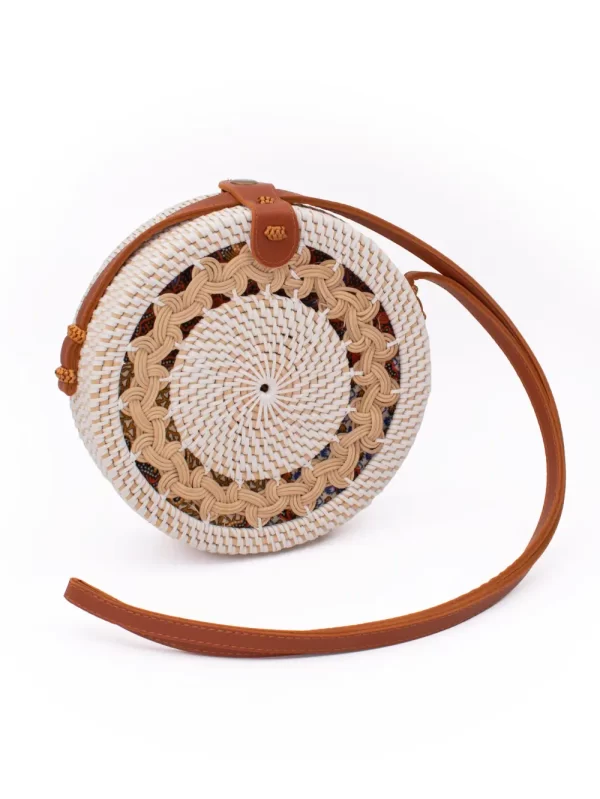 CARTERA REDONDA DE RATÁN CON DISEÑO