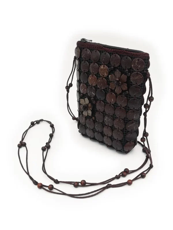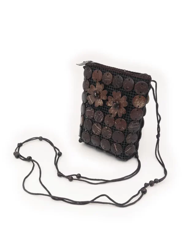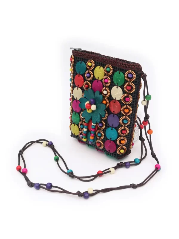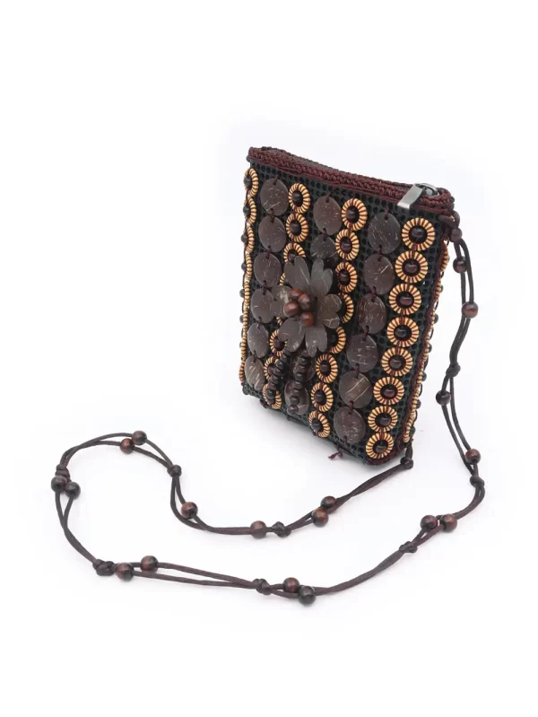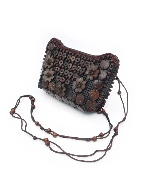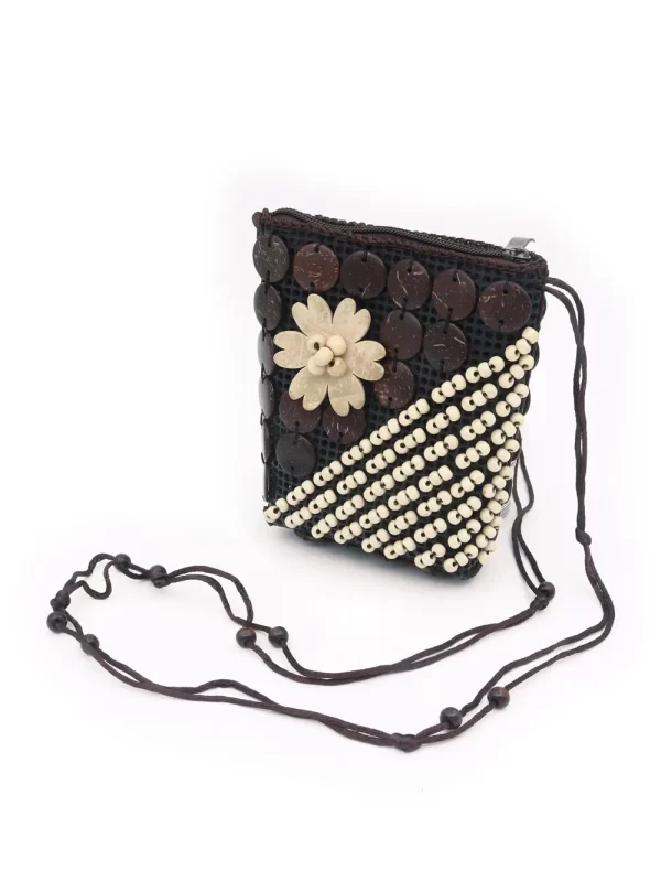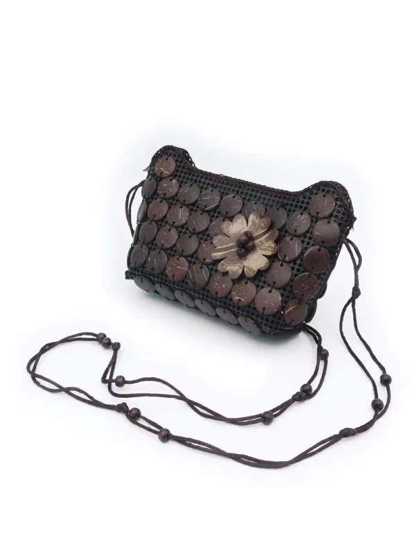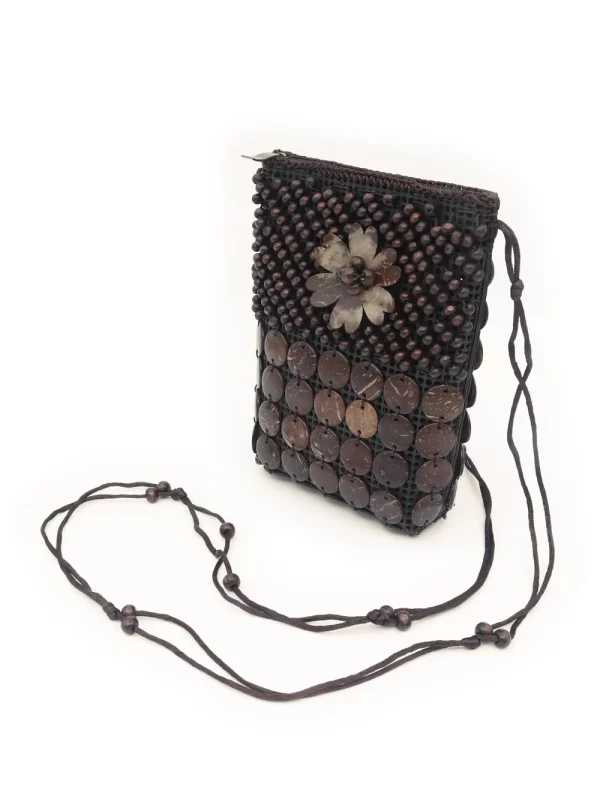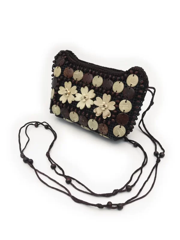 BOLSO DE CÁSCARA DE COCO CON CUENTAS ESTILO ÉTNICA CON 5 FLORES