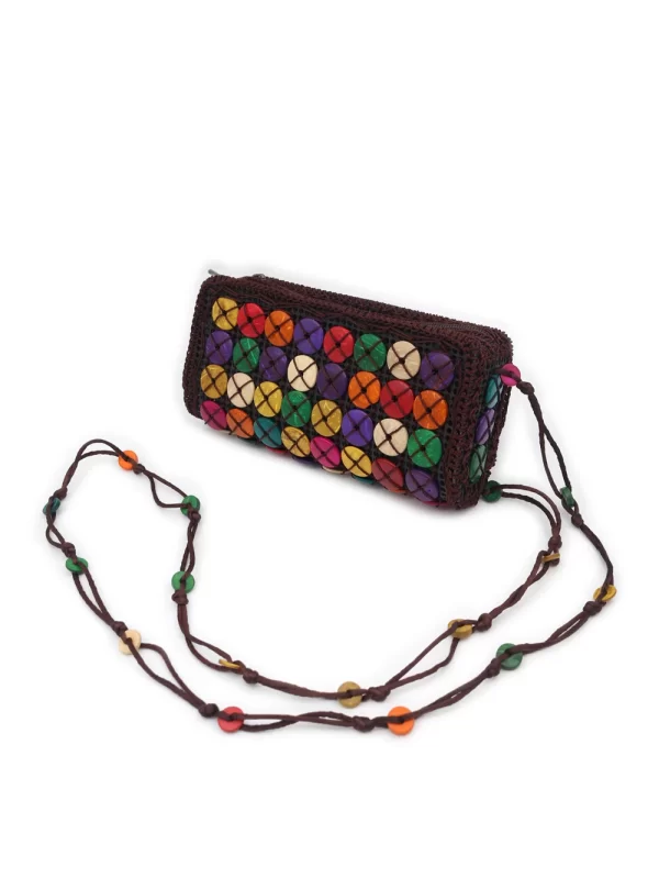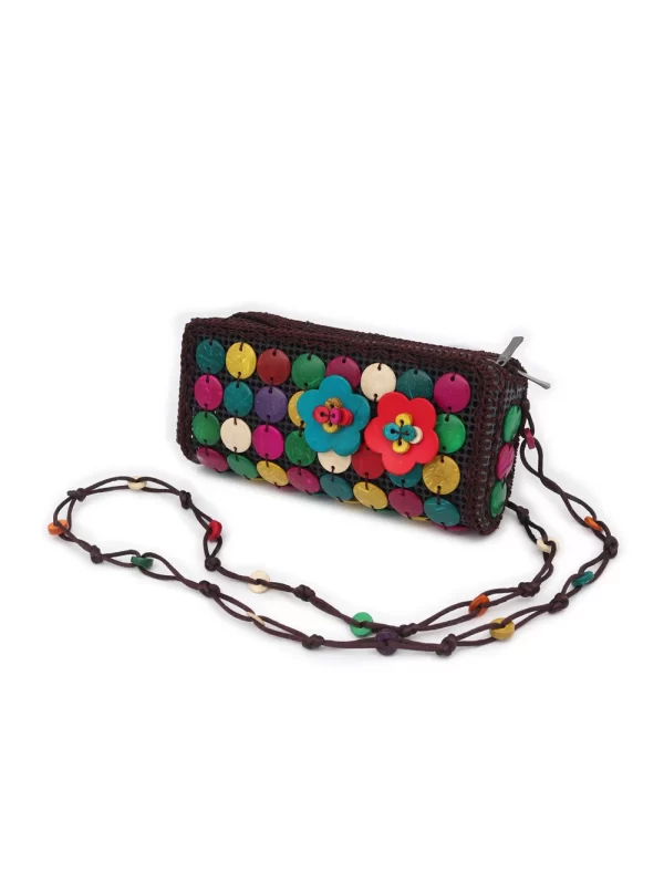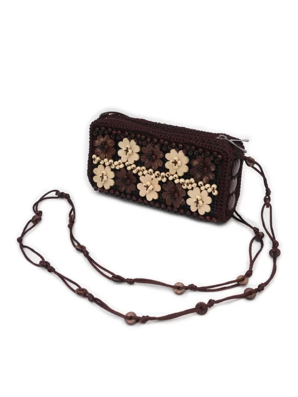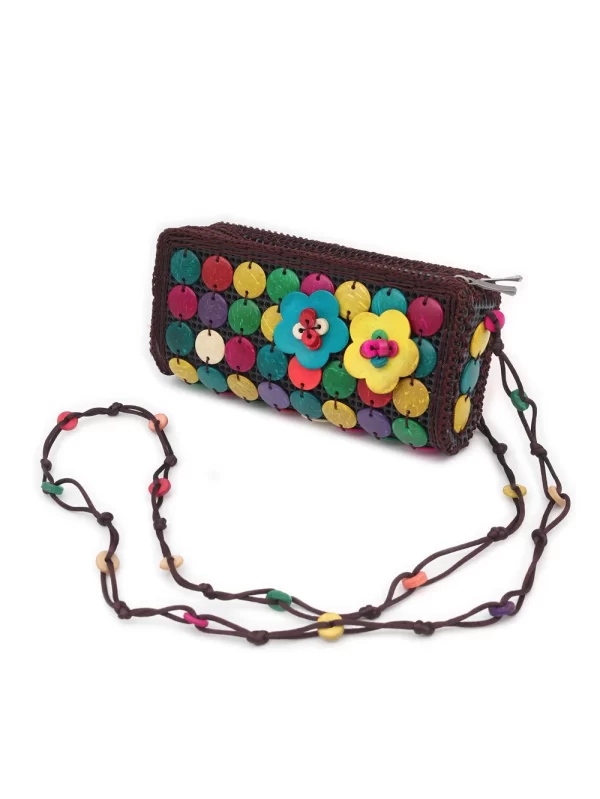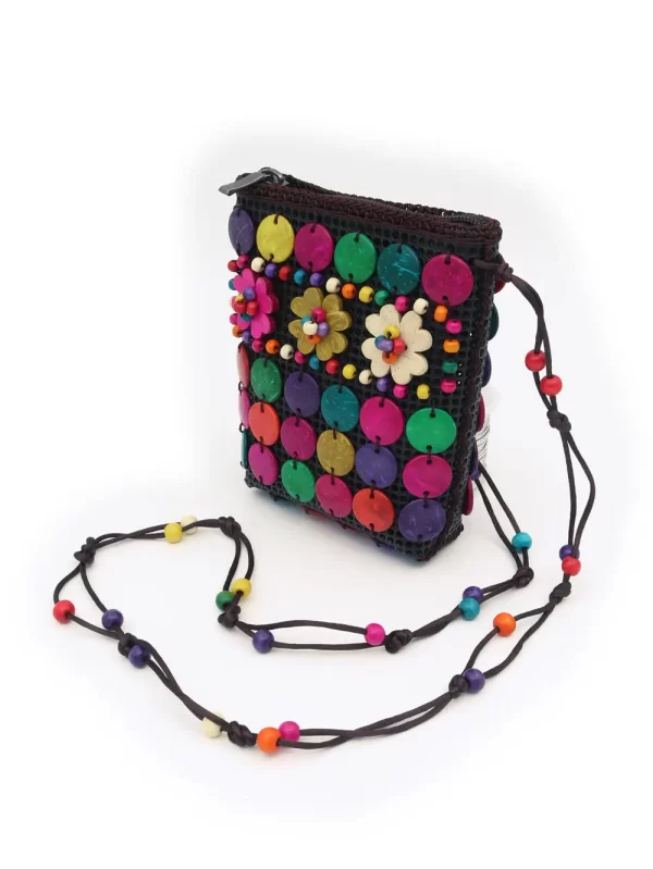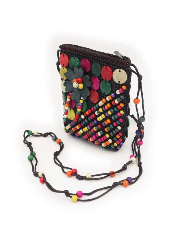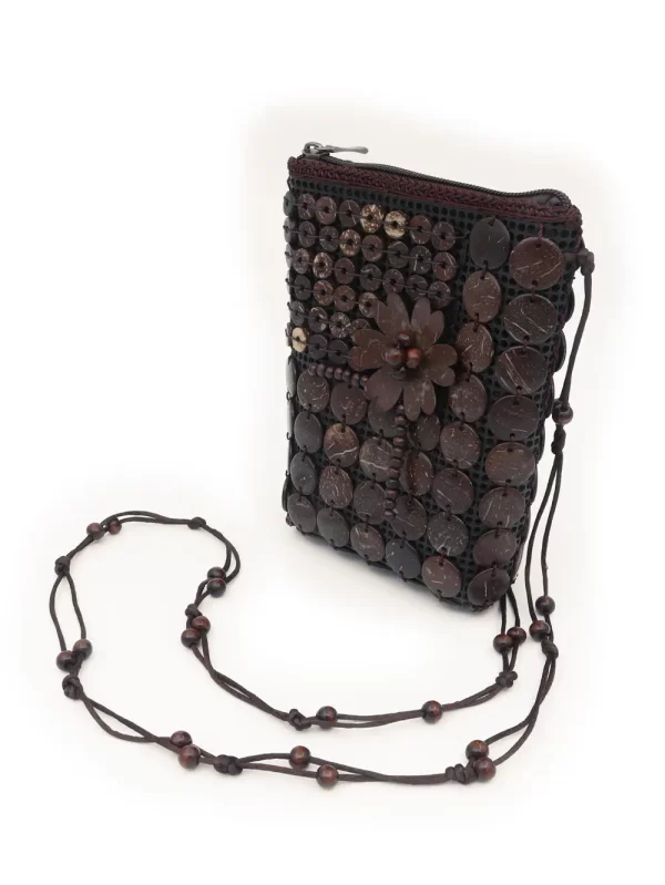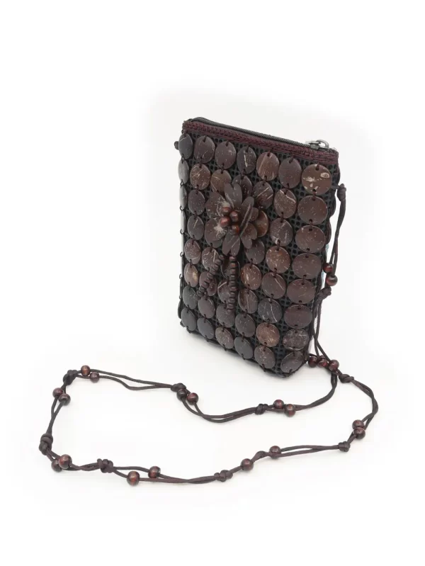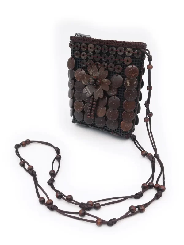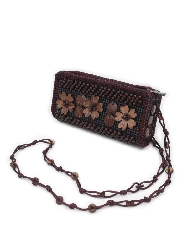 BOLSO DE CÁSCARA DE COCO CON CUENTAS ESTILO ÉTNICA CON 5 FLORES