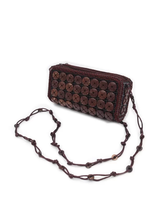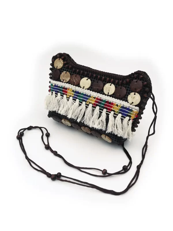 BOLSO DE CÁSCARA DE COCO CON CUENTAS ESTILO ÉTNICA CON BORLAS