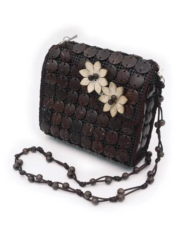 BOLSO DE CÁSCARA DE COCO CON CUENTAS ESTILO ÉTNICA CON 3 FLORES