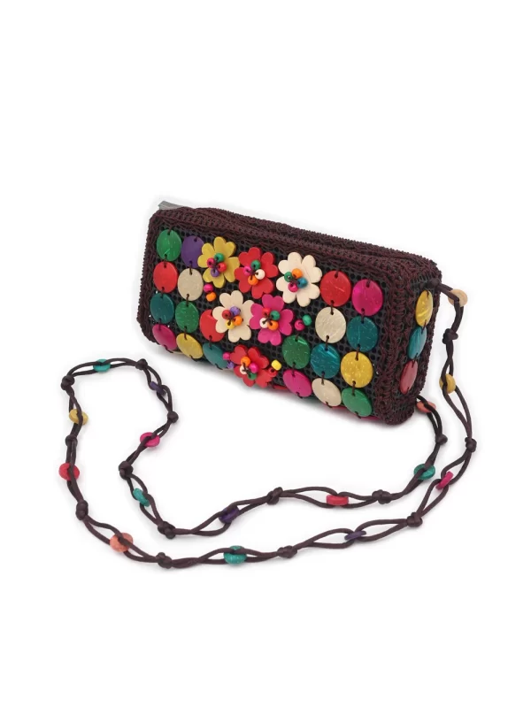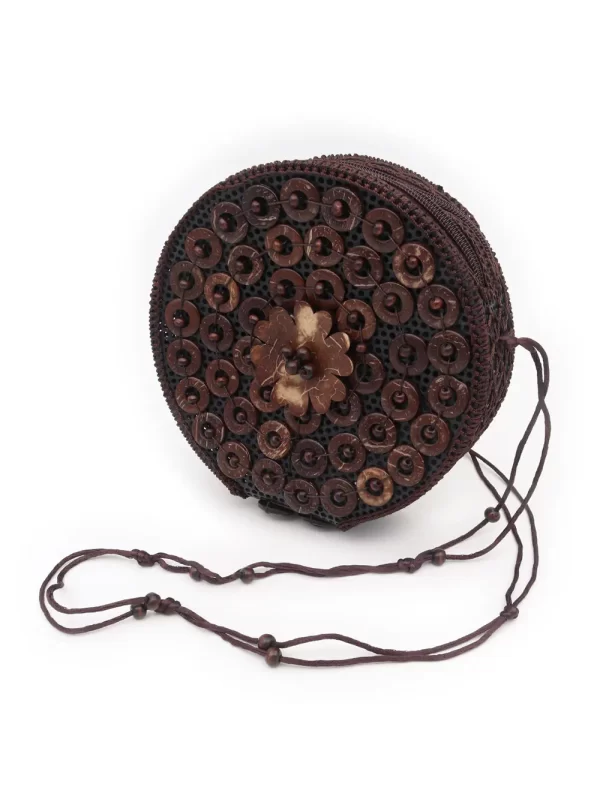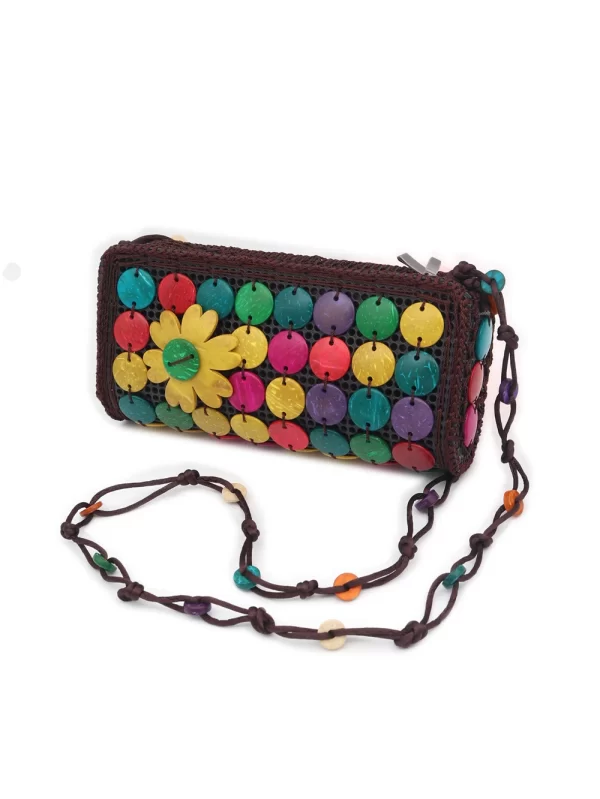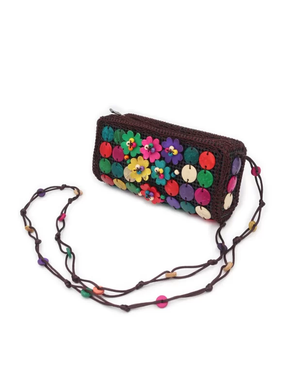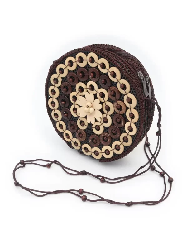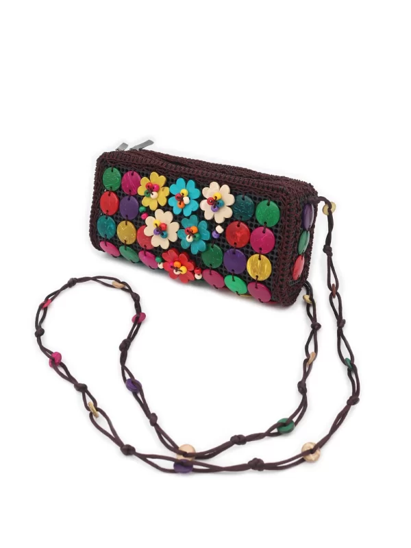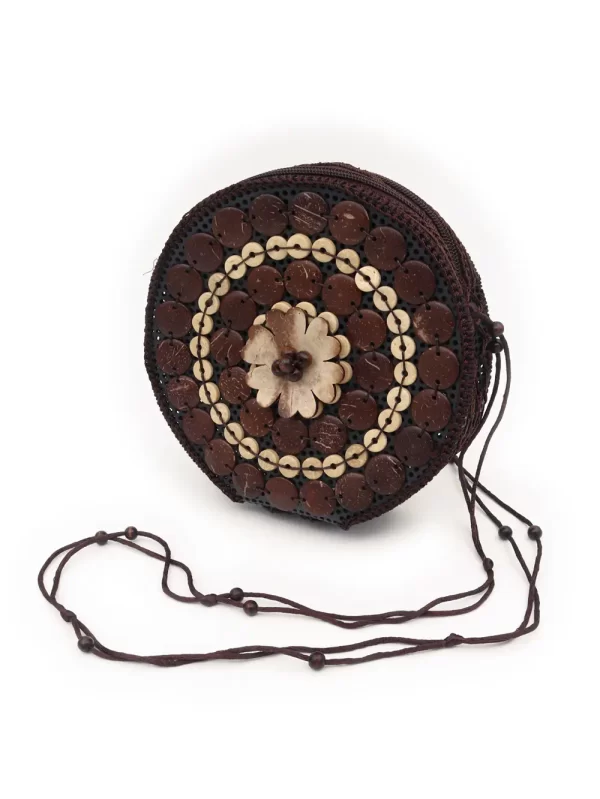 BOLSO DE CÁSCARA DE COCO CON CUENTAS ESTILO ÉTNICA CON 5 FLORES