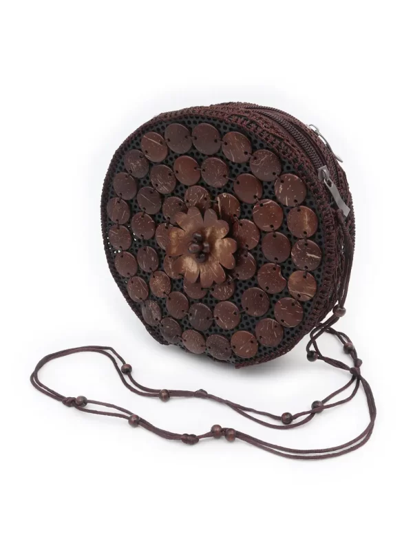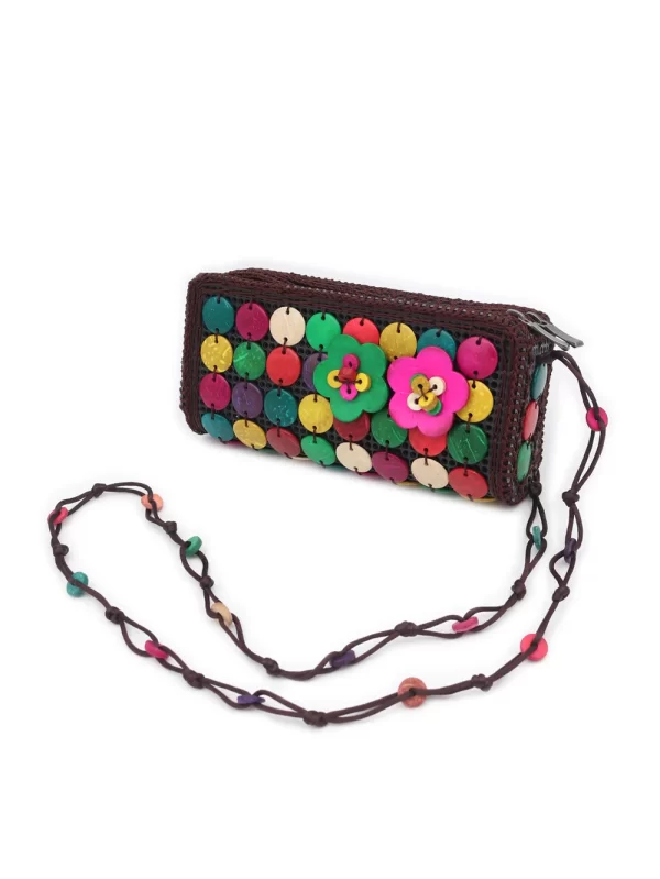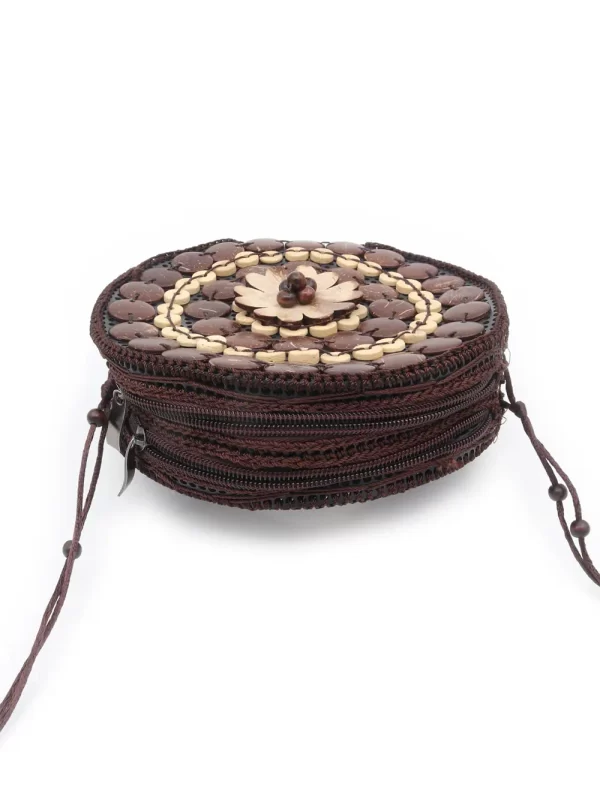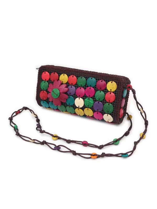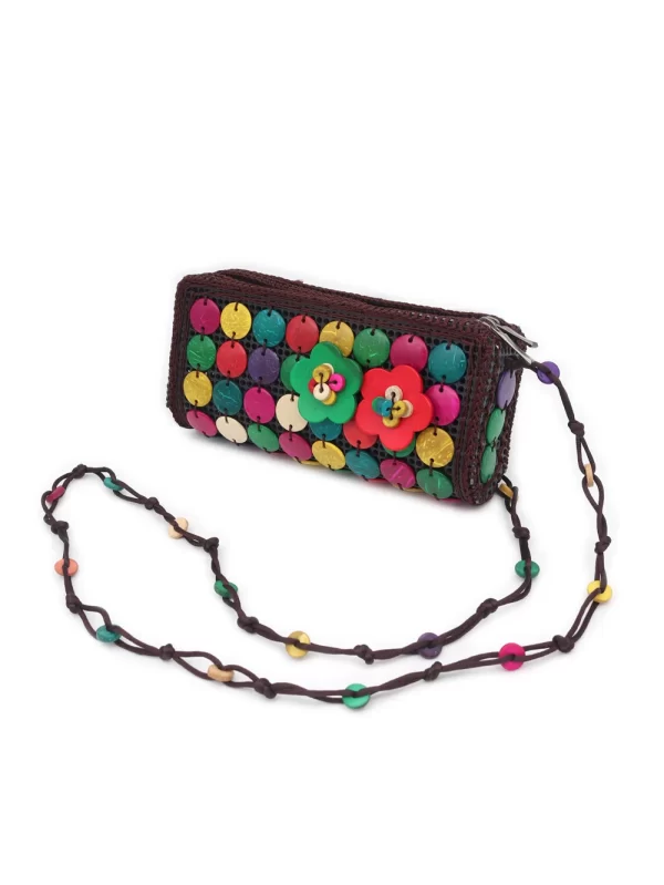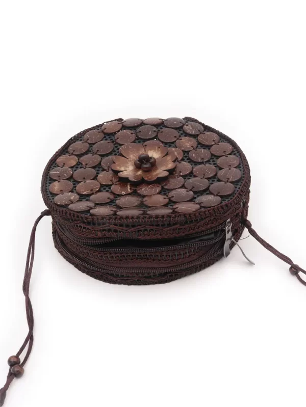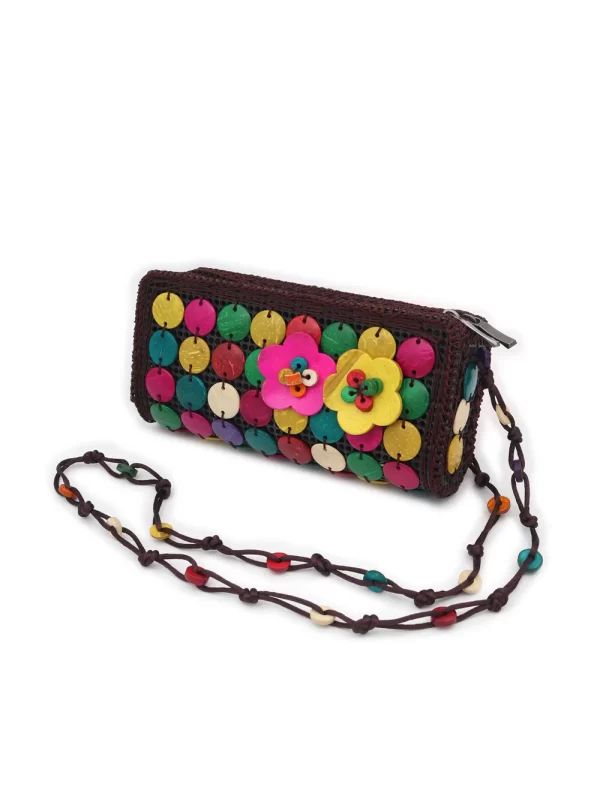 BOLSO DE CÁSCARA DE COCO CON CUENTAS ESTILO ÉTNICA CON 5 FLORES