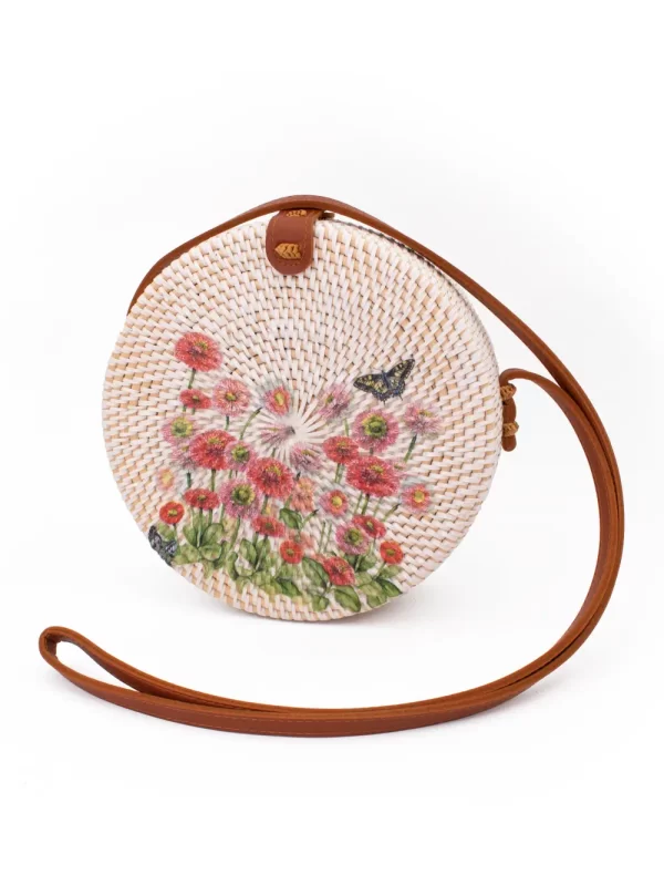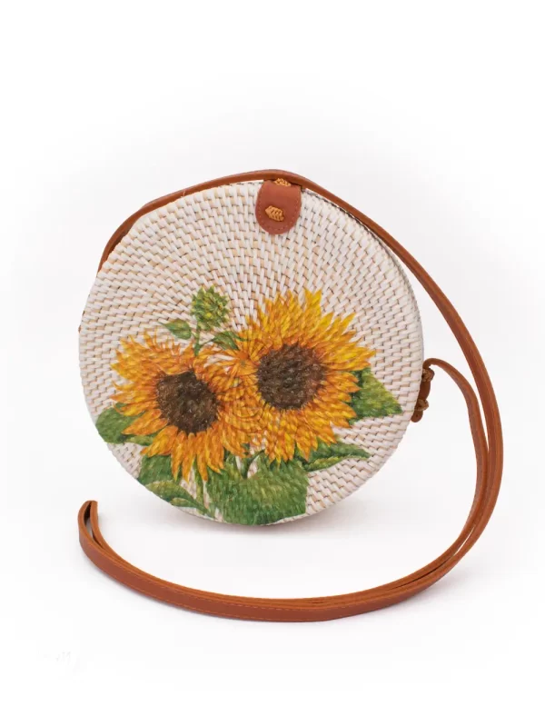 Cartera de Ratán Material: Ratán Medida: 20 cm Diseño: Girasol Color: Blanco
