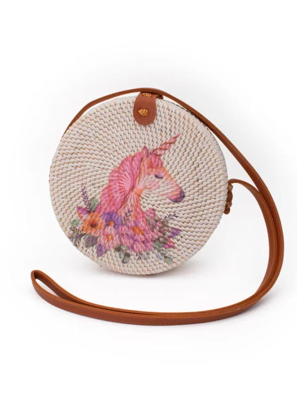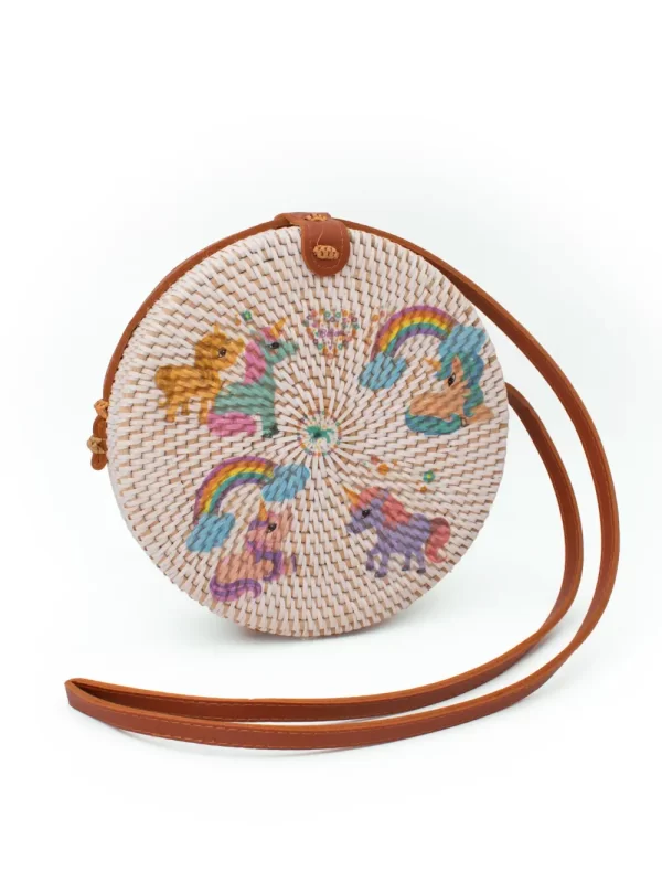 Cartera de Ratán Material: Ratán Medida: 20 cm Diseño: Unicornio Color: Blanco