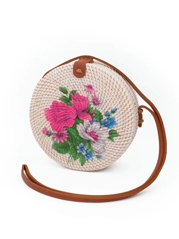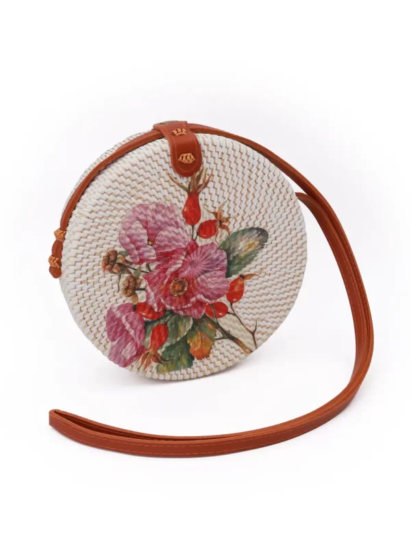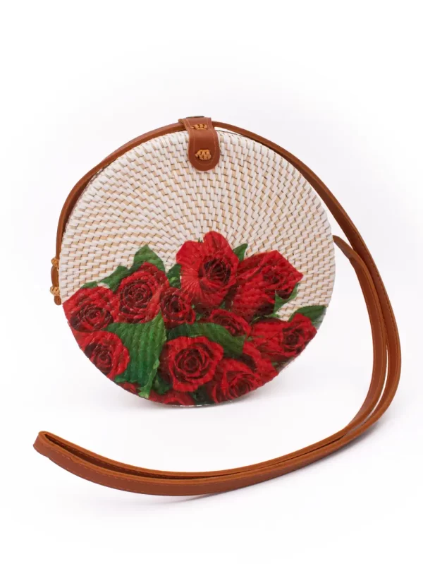 Cartera de Ratán Material: Ratán Medida: 20 cm Diseño: Rosas Color: Blanco