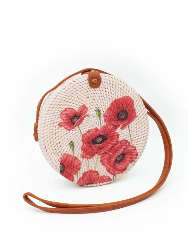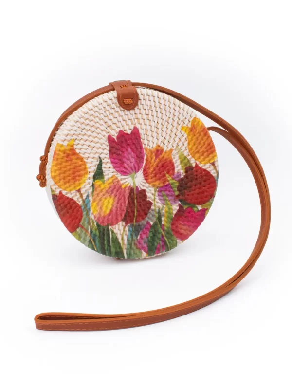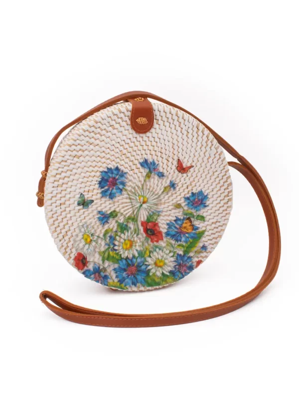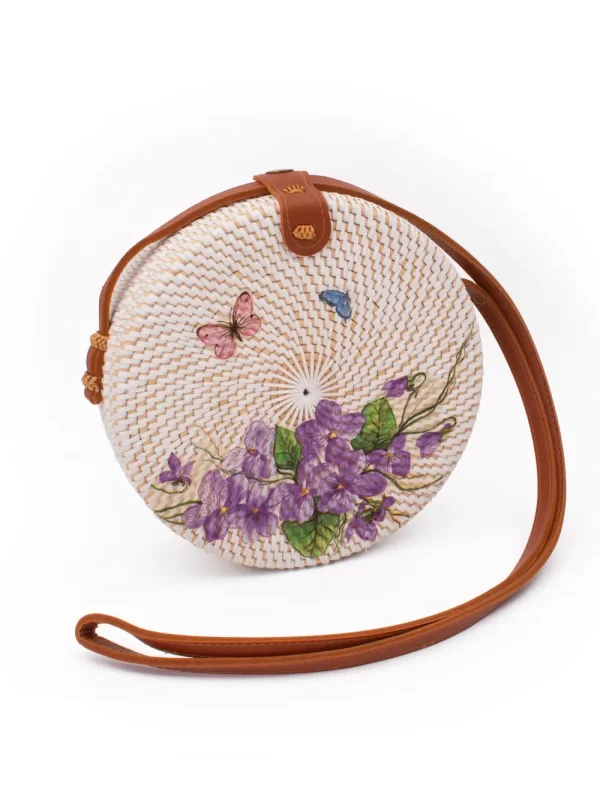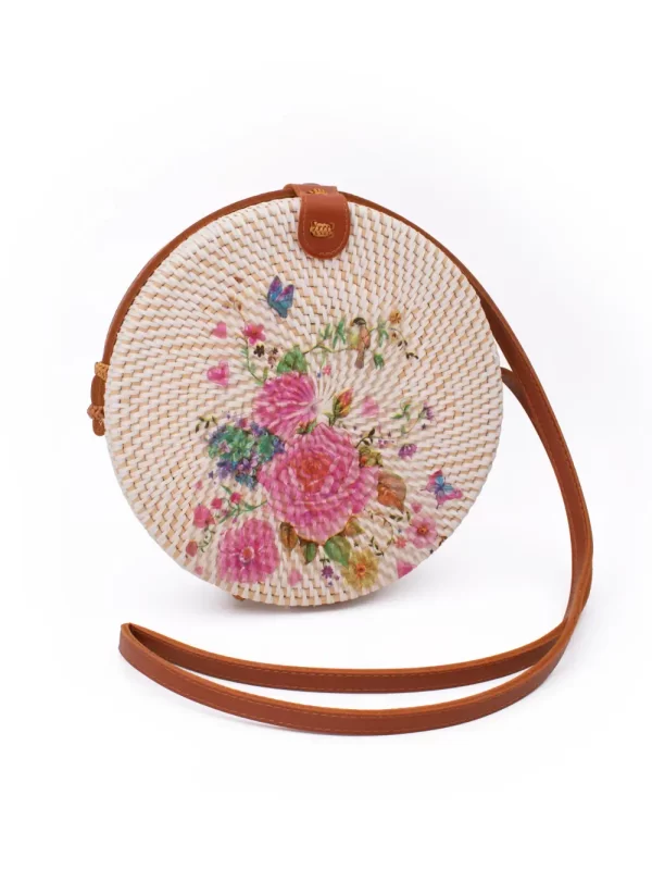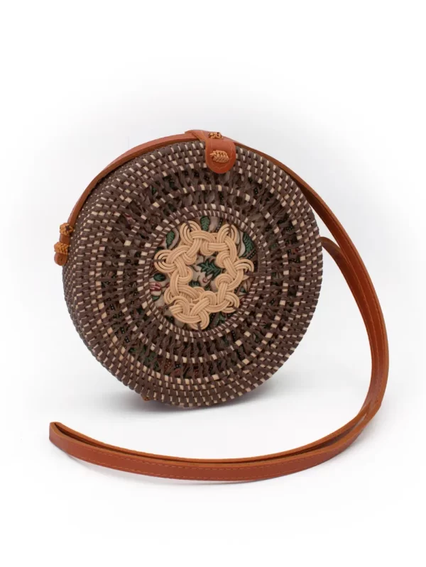 CARTERA REDONDA DE RATÁN CON DISEÑO
