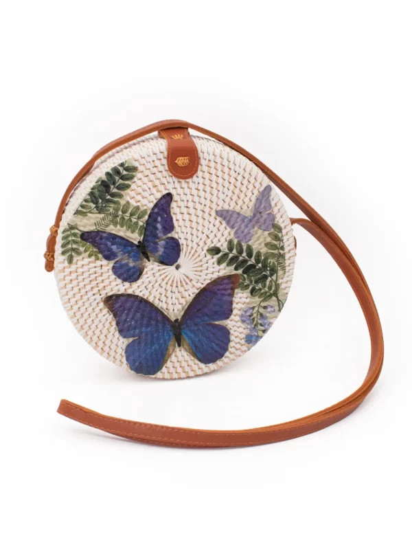 Cartera de Ratán Material: Ratán Medida: 20 cm Diseño: Mariposa Color: Blanco