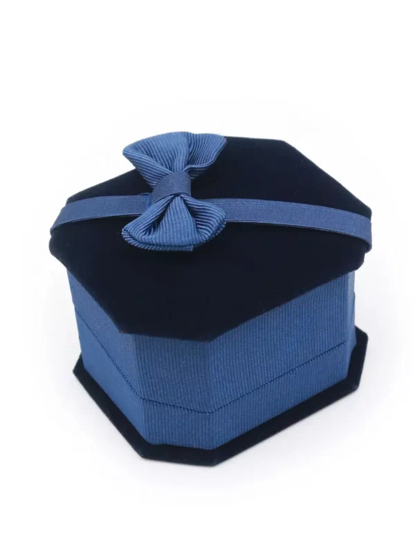 CAJA DE ANILLO DE TERCIOPELO OCTAGONAL CON LAZO COLOR AZUL MERINO