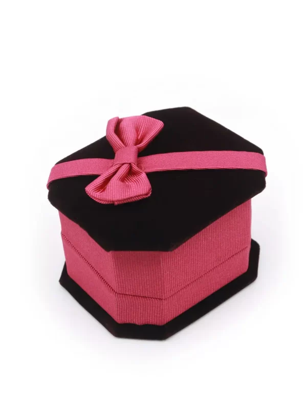 CAJA DE ANILLO DE TERCIOPELO OCTAGONAL CON LAZO COLOR ROSADO