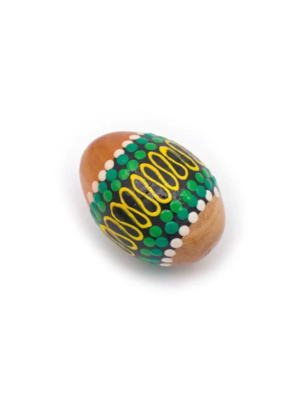 Maracas Forma: Huevo Color: marron y multicolor puntillisimo Medida: 7cm