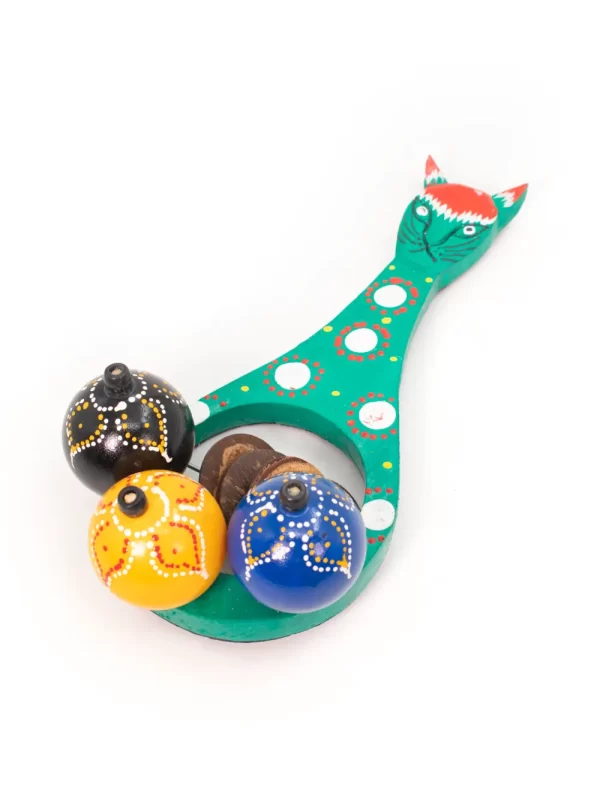 Maracas Coloridas Material: Madera Medida: 20 cm Forma: Gato Color:Verde